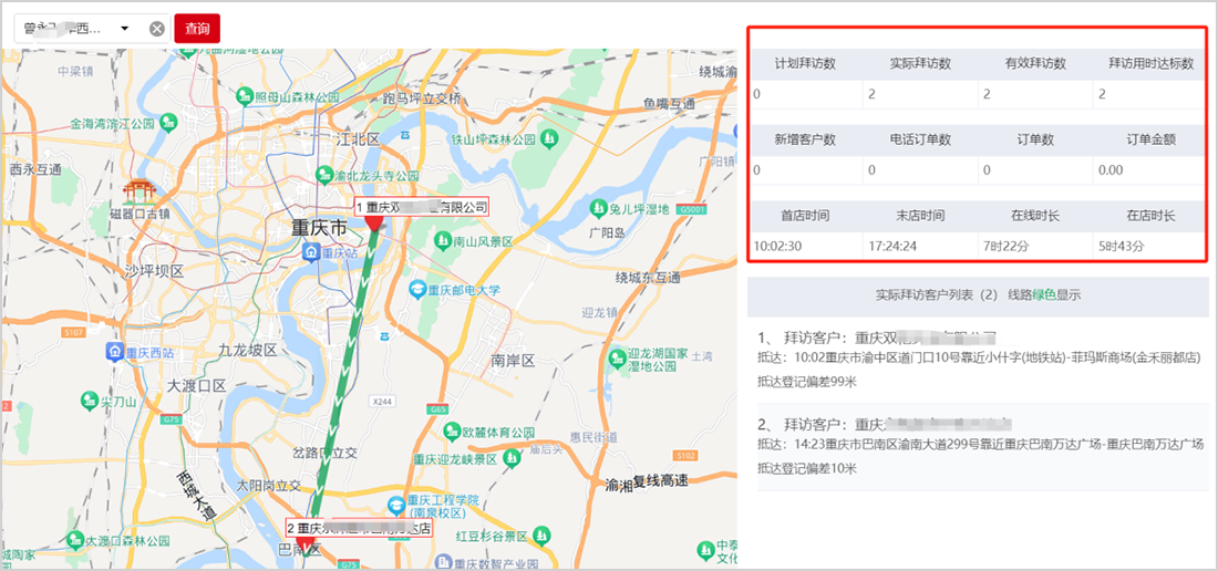 后台人员在PC端,可以查询外勤人员执行的拜访记录,根据公司标准评估拜访是否合格。