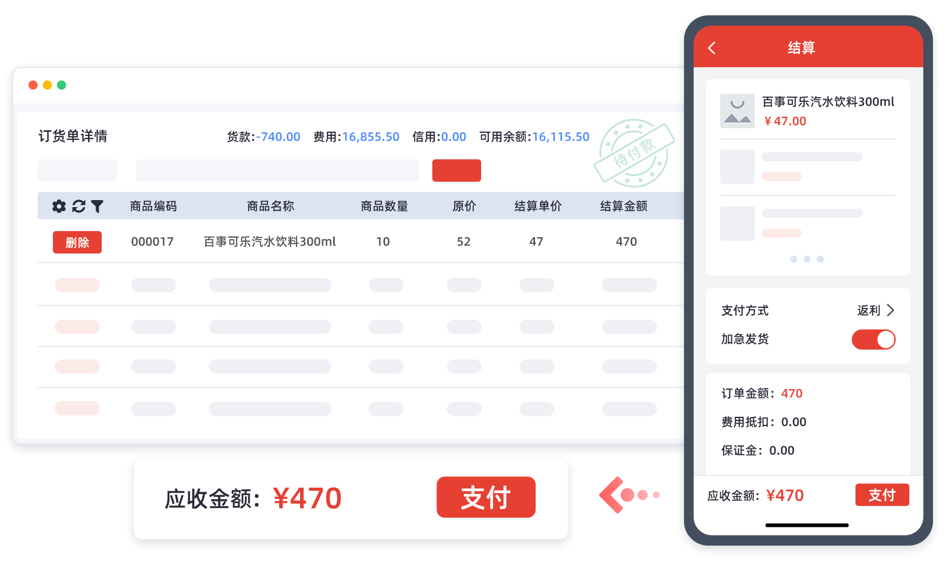 通过订货系统,经销商可以方便地完成支付,并查看结算明细。