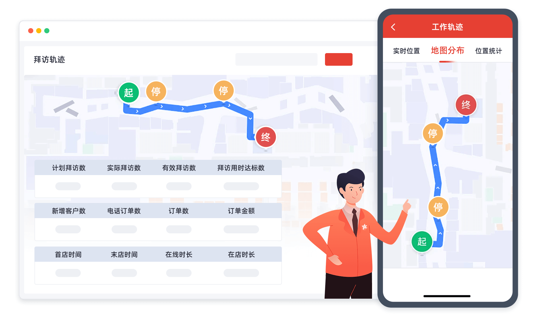 这一功能允许企业实时监督业务员的位置和活动轨迹,确保他们在工作时间进行有效的客户拜访,提高管理效率和透明度。