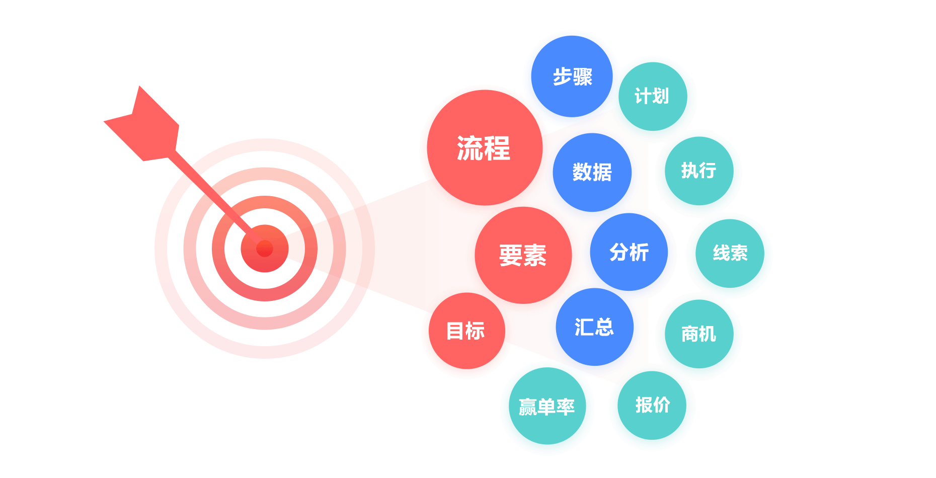 新员工业务过程快速上手;针对动态阶段的数据分析汇总,提升赢单率。